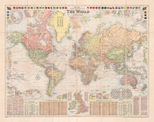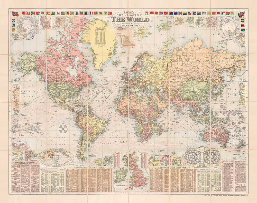 Antiguo mapa del mundo de Bacon, 1908: Atlas grande y raro