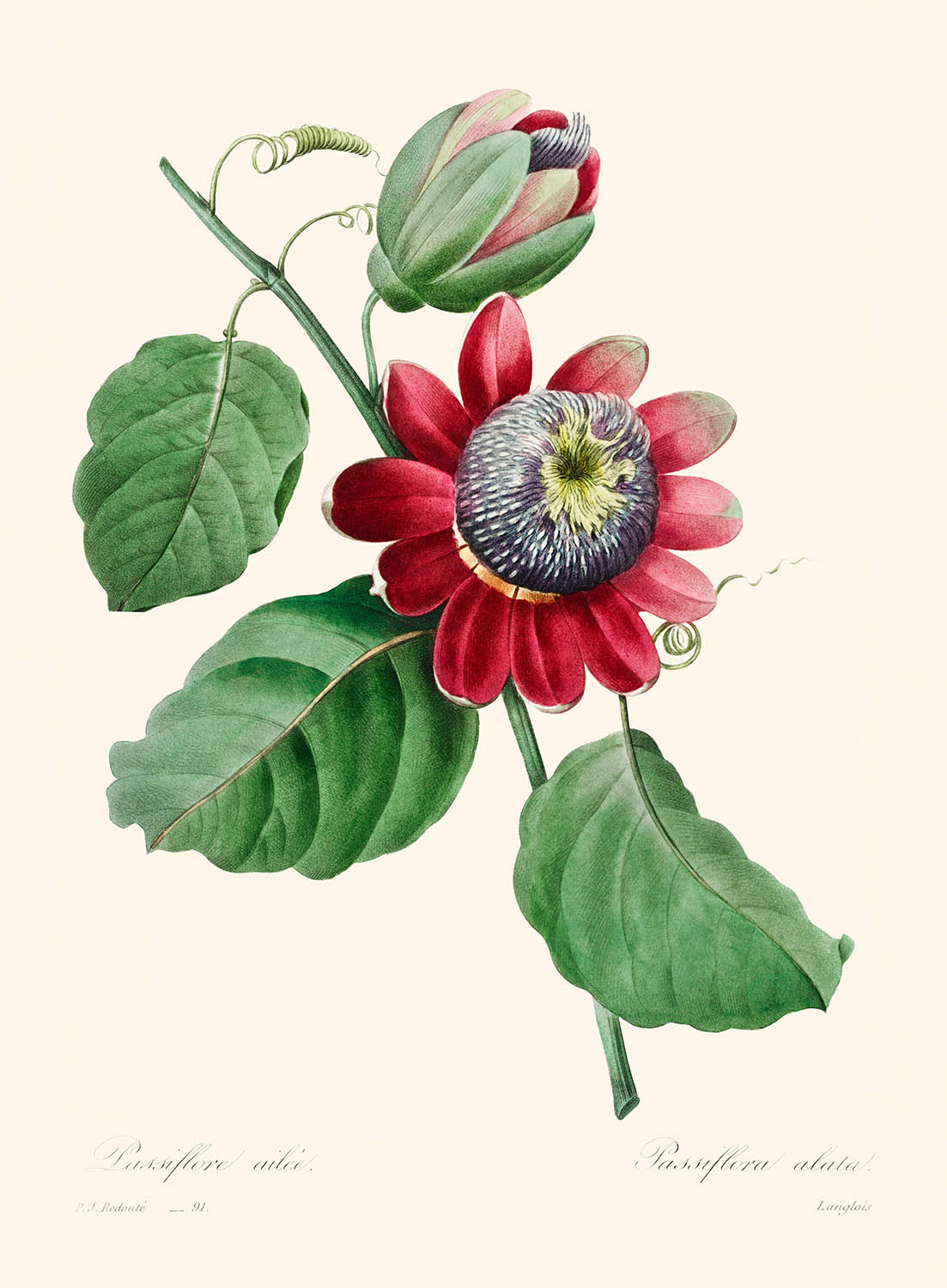 Ilustración botánica de Passiflora Ailee por Pierre-Joseph Redouté, 1827