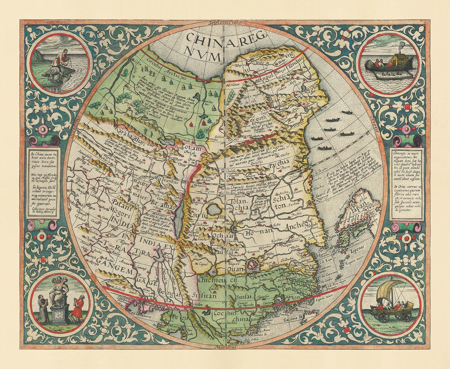 Mapa antiguo más raro de China, 1593 por Cornelis de Jode: Primera carta europea de China, Japón y Corea