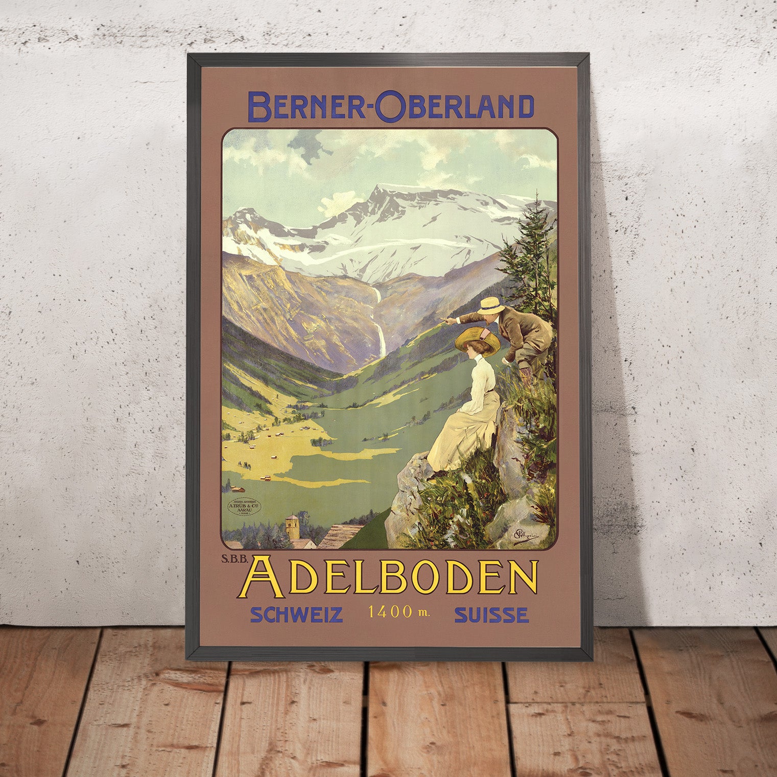 Adelboden Travel Poster: Berner Oberland, 1400m by Carlo Pellegrini, 1910