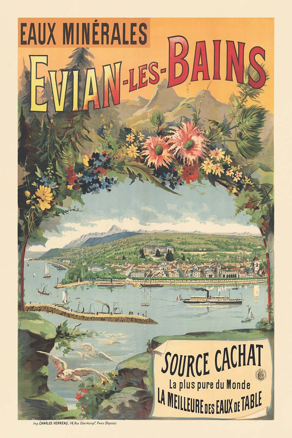 Evian-les-Bains Travel Poster: Eaux minérales by Imp. Charles Verneau, 1890