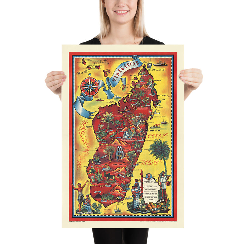 Madagascar Travel Poster: Superficie de l’ïle by Maurice Tranchant de Lunel, 1952