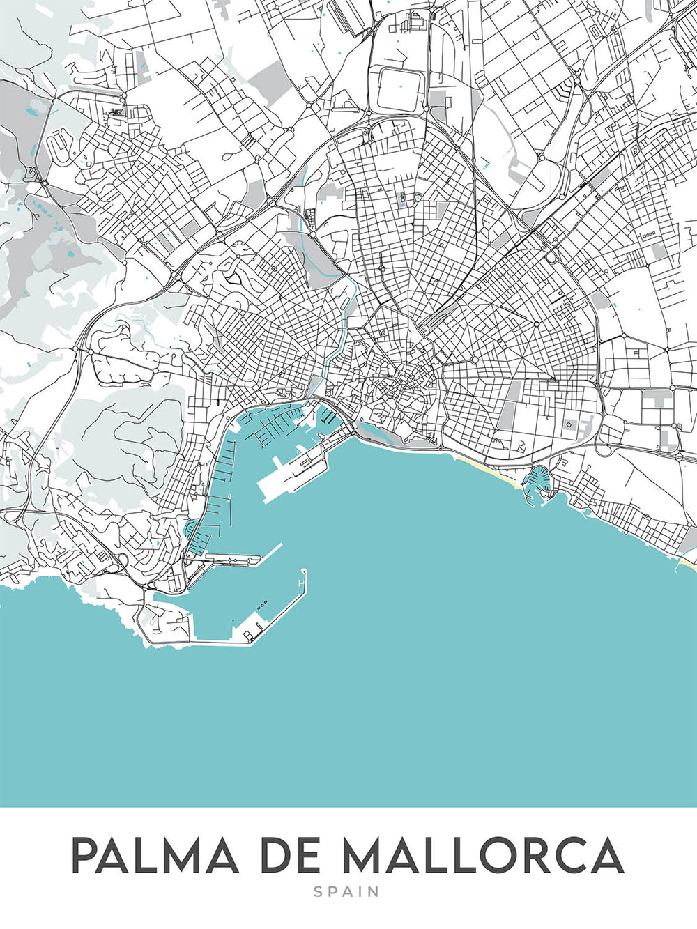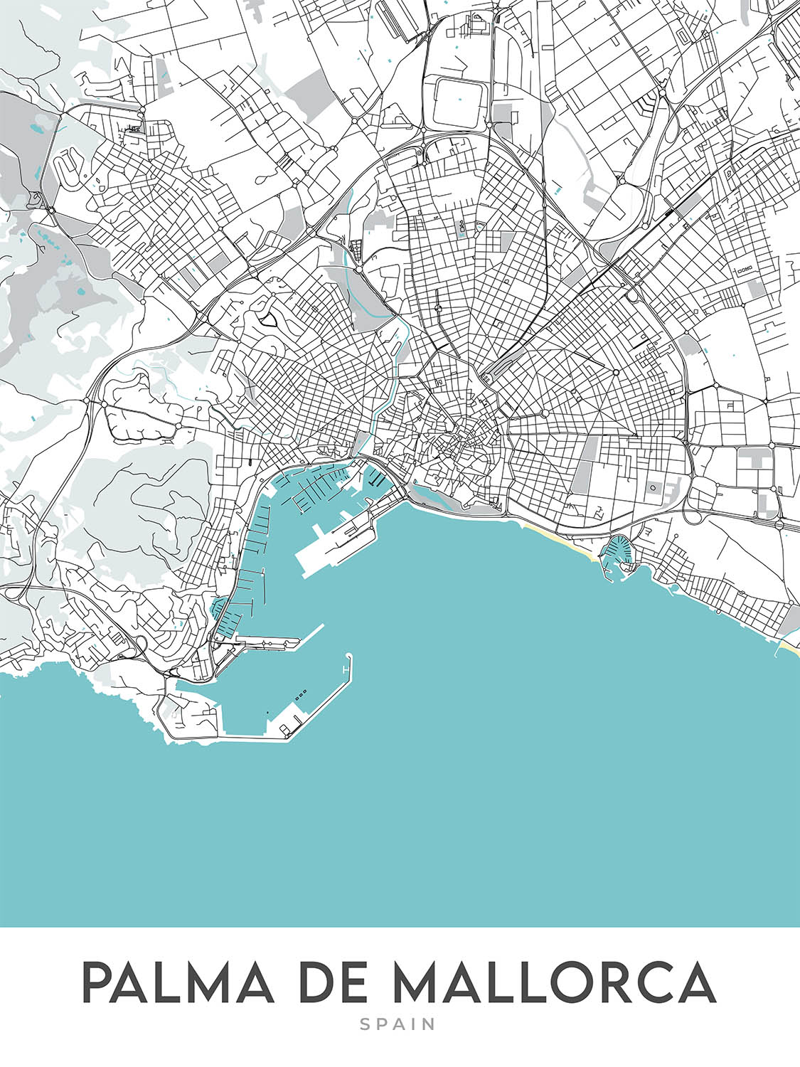 Este mapa de Palma de Mallorca, la vibrante capital de la isla española de Mallorca, es una obra maestra cartográfica moderna que captura la esencia de esta joya mediterránea. Con su enfoque en el diseño contemporáneo y la estética, este mapa es un elegante complemento para cualquier hogar u oficina, ofreciendo una perspectiva única de una de las ciudades más cautivadoras de Europa.