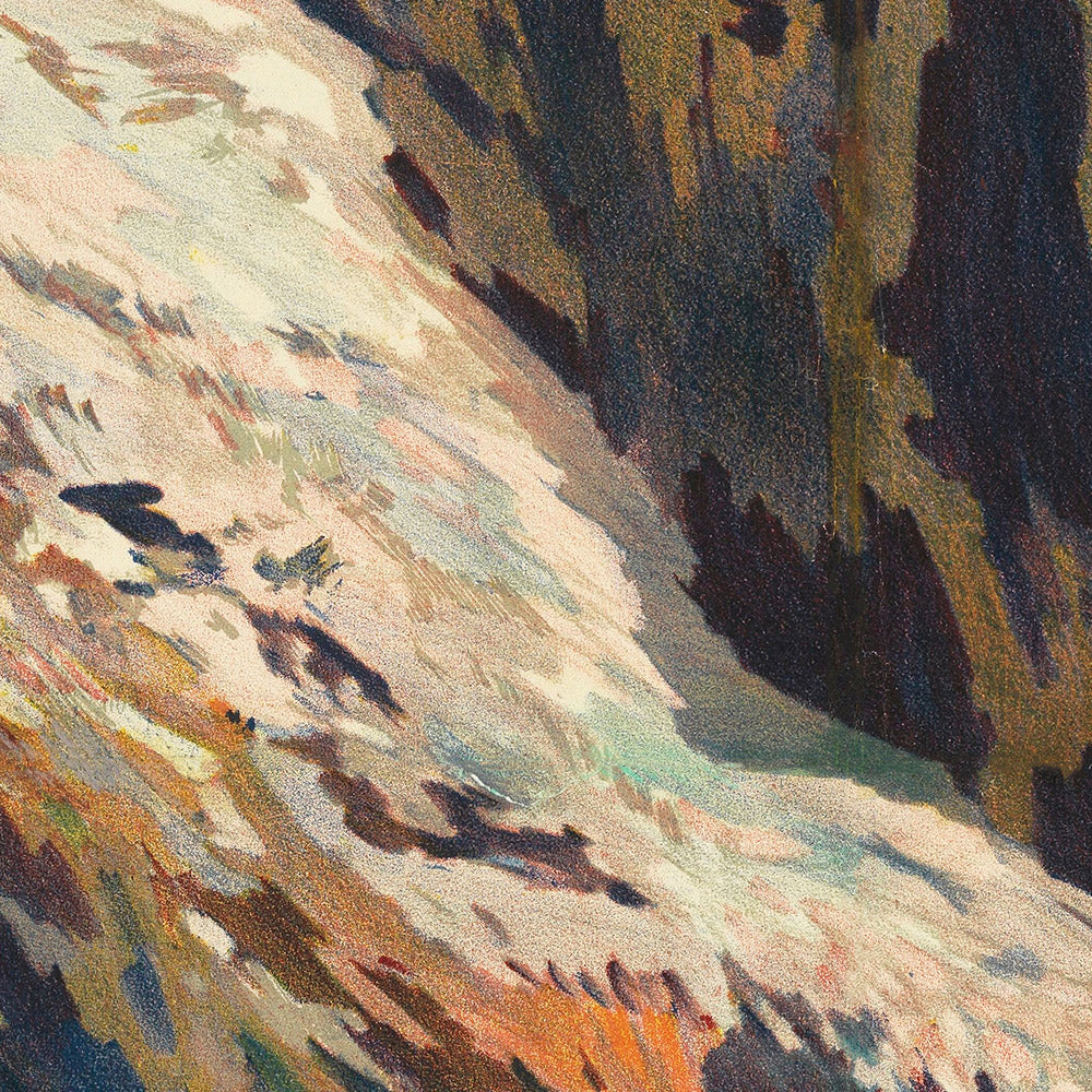 François Cachoud (1866–1943) was a French painter from the Savoy region, long admired for his atmospheric alpine landscapes and moonlit “nocturnes.” Trained in the traditions of fine painting yet keenly attuned to the graphic clarity required for posters, he brought a painter’s sensitivity to commercial art. His collaboration with the PLM Railway positioned him at the intersection of art and modern mobility, and his alpine scenes remain prized for their lyrical handling of light and contour.