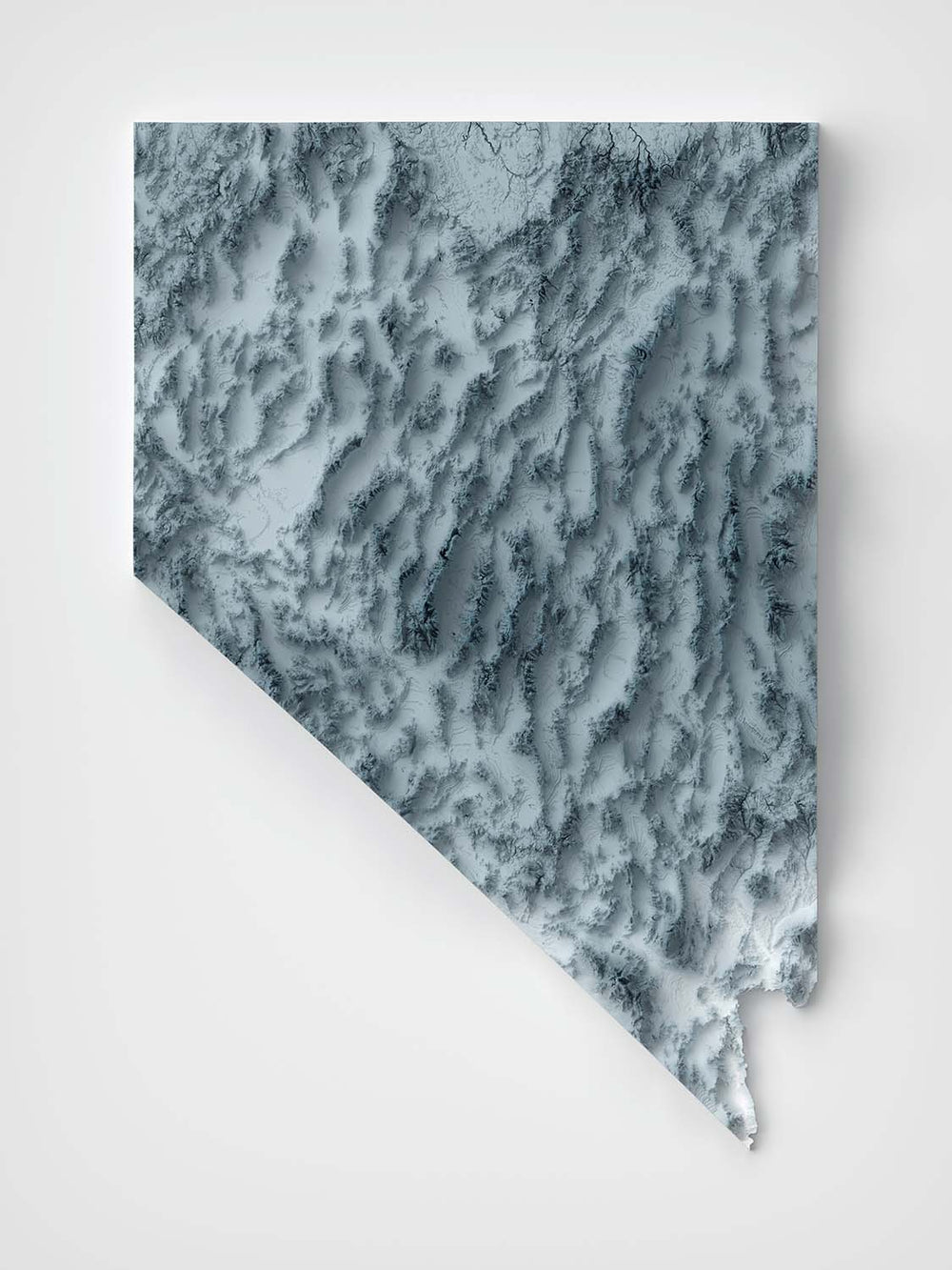 Este mapa de Nevada es más que una guía; es una invitación a explorar un paisaje moldeado por el tiempo, donde la interacción de altura y vacío cuenta la historia de mares antiguos y tierras en movimiento. Perfecto para cualquiera con una conexión a Nevada—ya sea que llames hogar a sus ciudades y pueblos o recuerdes viajes a través de sus amplios y abiertos espacios—esta pieza captura el espíritu duradero y indómito del Estado de la Plata.