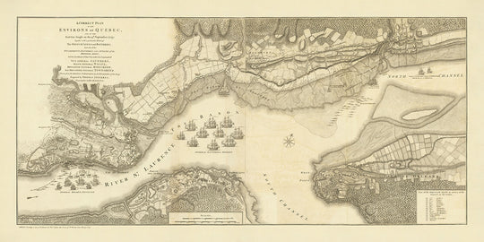 Sumérgete en un momento crucial de la historia de América del Norte con este exquisito mapa de 1768, "Un Plan Correcto de los Alrededores de Quebec, y de la Batalla librada el 13 de septiembre de 1759." Elaborado por el renombrado geógrafo Thomas Jefferys, este mapa detalla meticulosamente la Batalla de las Llanuras de Abraham, un punto de inflexión significativo en la Guerra de los Siete Años. Encargado por la Corona Británica, Jefferys se basó en encuestas originales realizadas por ingenieros del ejército, asegurando una precisión y detalle sin igual. Este mapa no es solo una representación de la geografía, sino un vívido relato de un compromiso militar histórico que moldeó el futuro de Canadá.