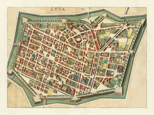 Matthäus Merian—one of the 17th century’s most influential engravers and cartographers—brings his hallmark precision to this Italian jewel. Celebrated for his city views and atlases, he unites empirical survey with refined artistry: crisp linework, balanced composition, and judicious use of color to clarify hierarchies of wall, street, and square. In Lucca, Tuscany, he captures a sovereign city whose strength in trade and governance was matched by its architectural poise. For historians, the map is a time-stamped ledger of early modern urbanism; for collectors, it is a tour de force of Renaissance geometry made legible. It remains a notably instructive city map—revealing, at a glance, how form, function, and fortification cohere into a resilient civic whole.