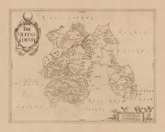 Este mapa de 1685 del condado de Queen, ahora conocido como condado de Laois, es una visión fascinante de la historia y la geografía de esta región de Irlanda. Creado por el renombrado cartógrafo Sir William Petty, el mapa es una representación detallada y precisa del condado, que muestra sus ciudades, pueblos, monumentos y características naturales.