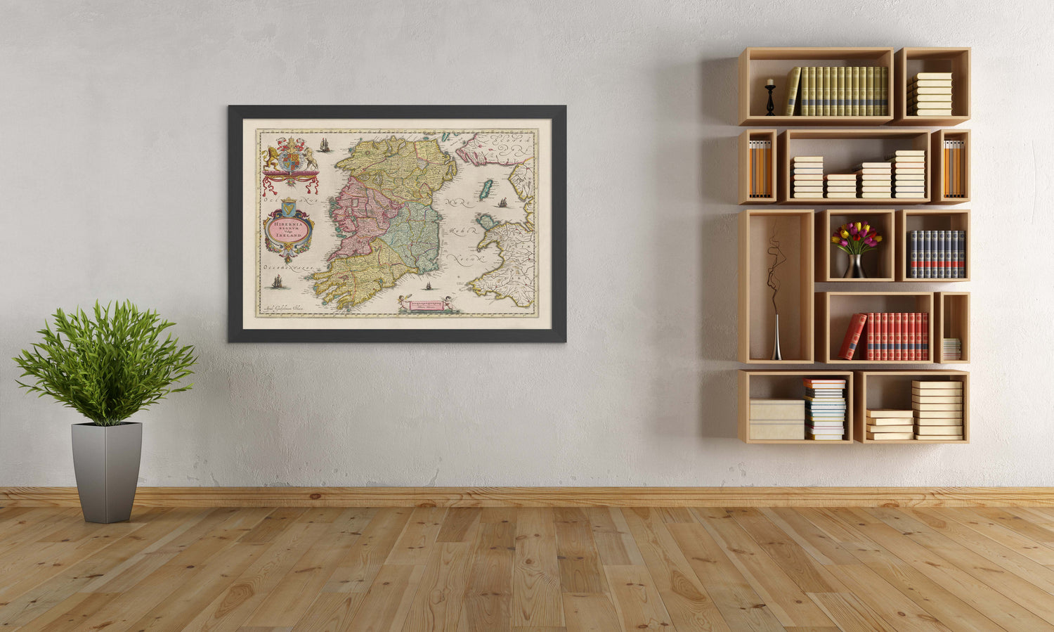 Mapa antiguo de Irlanda, Hibernia en 1654 por Joan Blaeu del Teatro Orbis Terrarum Sive Atlas Novus: Islas Británicas