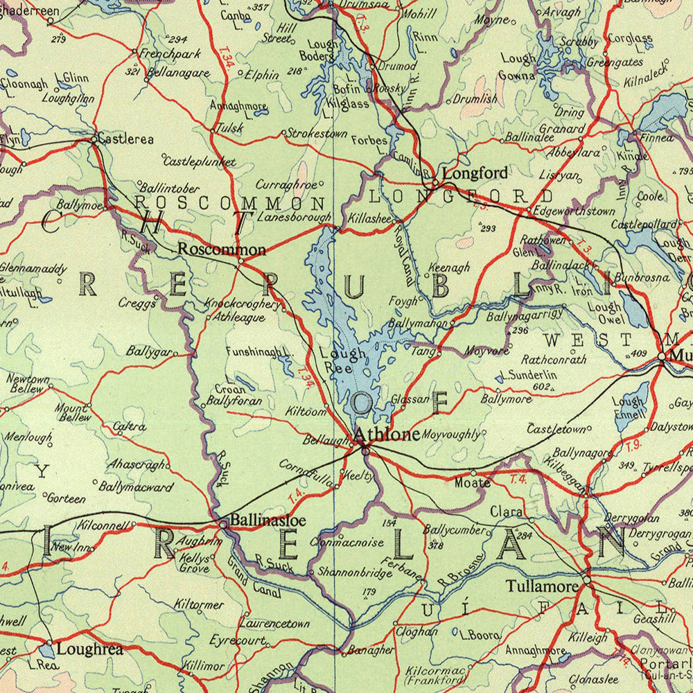 Old Mid-Century Map of Ireland by Bartholomew, 1955