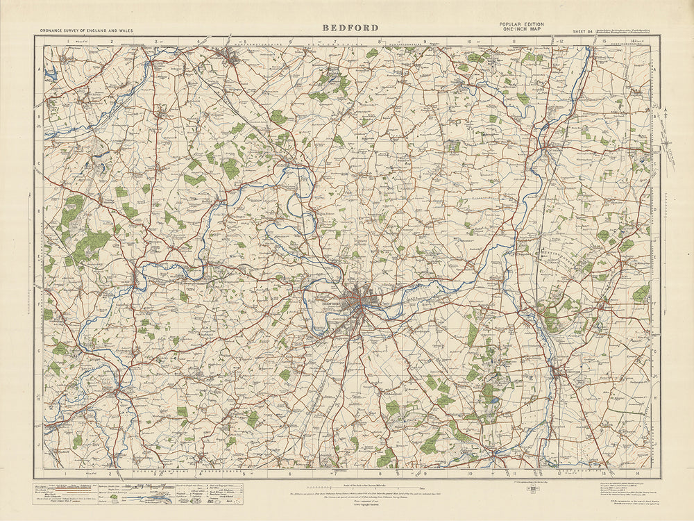 Explore el mapa de Old Ordnance Survey, hoja 84 - Bedford, 1925, y sumérjase en la rica historia, los fascinantes monumentos y los paisajes cambiantes de esta cautivadora región de Inglaterra.
