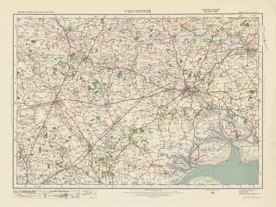 Sumérgete en la historia, la geografía y el patrimonio cultural de Colchester y la región circundante con este cautivador mapa Old Ordnance Survey de 1925.