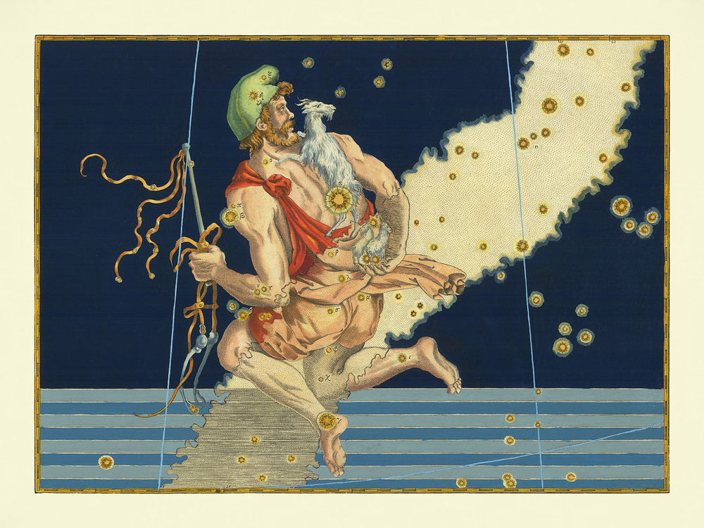 Esta impresión de arte fino de "Auriga" sería un regalo maravilloso para cualquier ocasión, incluyendo Navidad, el Día del Padre, una inauguración de casa, o como un regalo especial de cumpleaños. Celebra el impecable gusto de alguien en el arte y su interés en el cosmos con una impresión que une la importancia histórica con la belleza celestial.