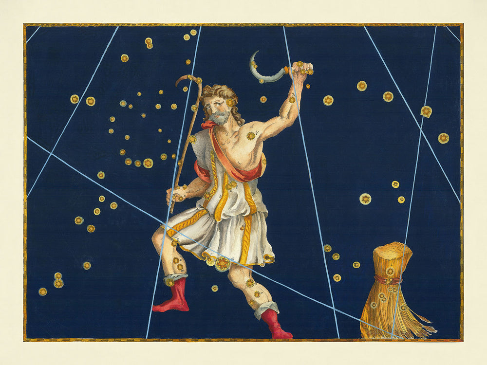 El uso de oro para resaltar las estrellas y las técnicas de coloración a mano empleadas por Bayer elevan esta impresión a una verdadera obra de arte. Su valor histórico y estético la convierten en una opción atractiva para entusiastas de la astronomía, aficionados a la historia y conocedores del arte por igual. La fina artesanía combinada con las profundas historias mitológicas garantiza que esta pieza cautivará a cualquiera que la contemple.