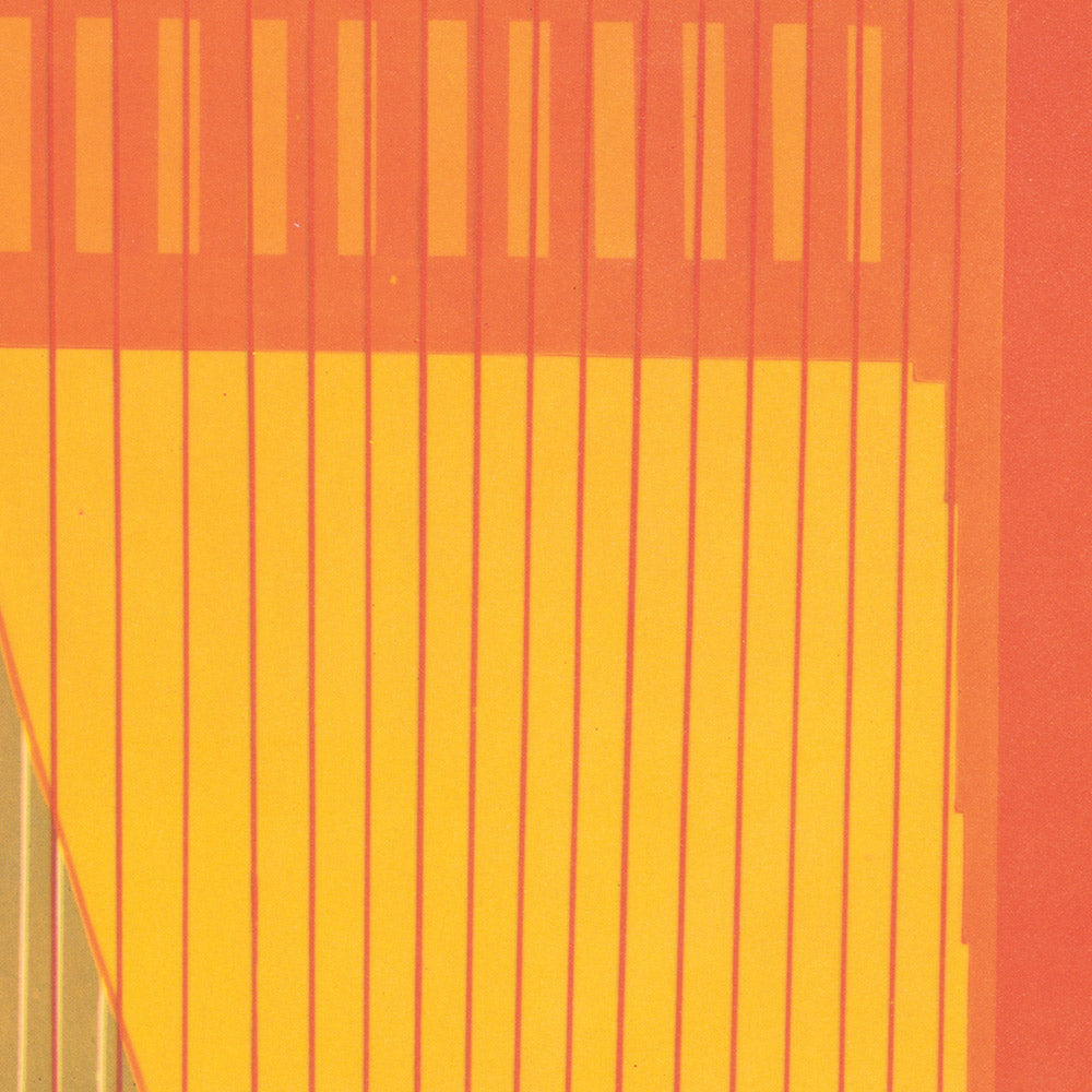 Color is the star of this composition. The dominant yellow and orange radiate California sunshine and warmth, while the saturated blue grounds the scene with maritime cool. The simplified, geometric handling of the bridge creates vertical energy and lift, while glittering bursts across the sky suggest fireworks, festival lights, or the sparkling allure of nighttime over the bay. These decisive shapes and hues embody mid-century modern design—making the artwork equally at home in contemporary, minimalist, or eclectic interiors—and they serve as a spirited reminder of San Francisco’s vitality and charm.