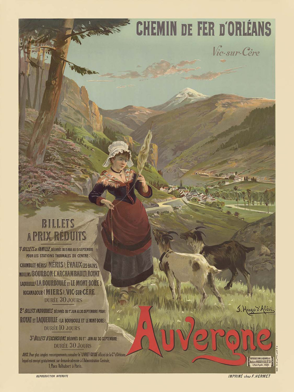 Vic-sur-Cère, Auvergne Travel Poster: Chemins de Fer d’Orléans – Billets à prix réduits by F. Hugo d’Alesi, 1896