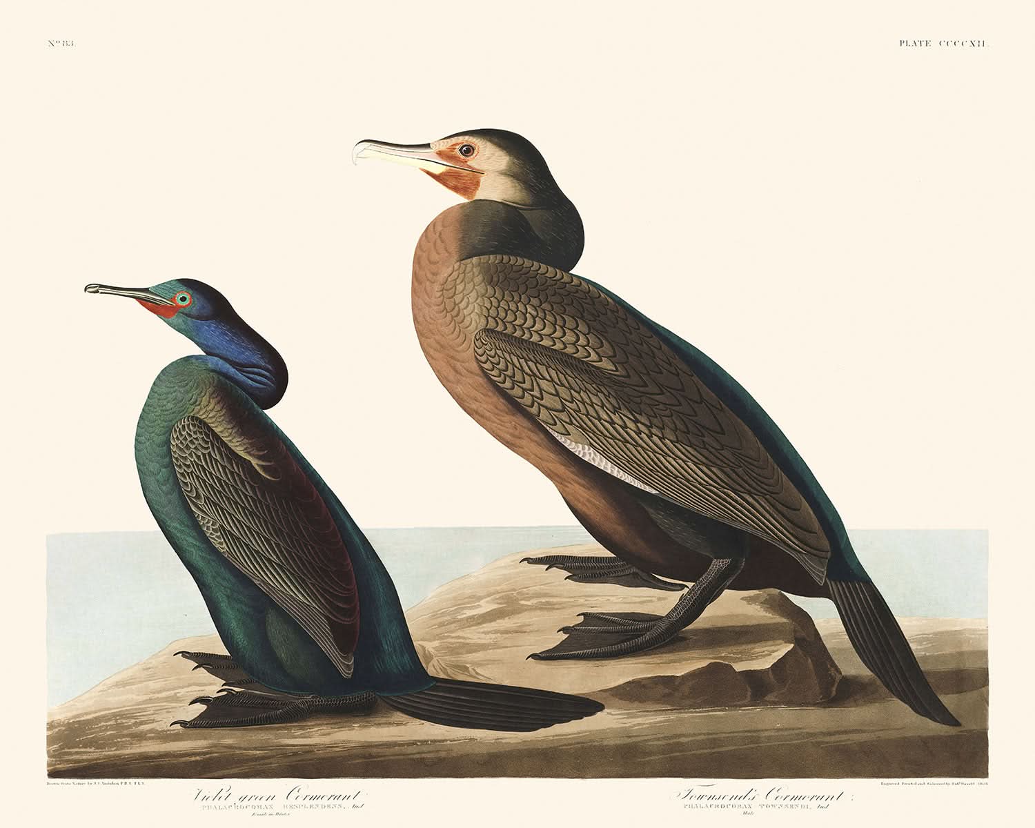 Cormorán verde violeta y cormorán de Townsend, de John James Audubon, 1827