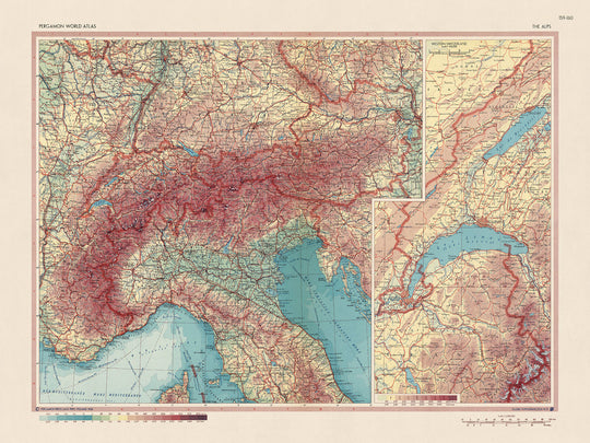 En conclusion, la carte des 'Alpes' est une pièce captivante qui combine une cartographie détaillée avec de riches perspectives historiques et géographiques. Que vous soyez un cartographe chevronné, un passionné d'histoire ou simplement quelqu'un qui apprécie la beauté de notre monde, cette carte saura captiver votre intérêt. Sa représentation détaillée des Alpes et de la région environnante sert de rappel de l'interaction complexe entre la nature et la civilisation humaine, et des manières complexes dont elles se façonnent mutuellement. Cette carte n'est pas seulement une représentation visuelle d'une région, mais un voyage dans le passé, offrant une perspective unique sur le monde tel qu'il était en 1967.