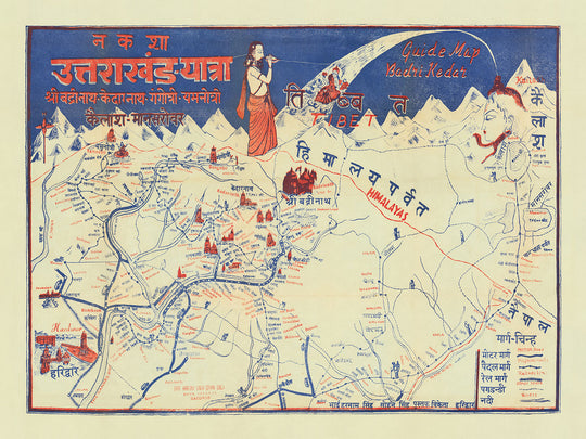 Bhai Harnam Singh Sohan Singh, le cartographe, a habilement combiné la précision cartographique avec des éléments artistiques pour créer une carte qui est à la fois un guide pratique et une œuvre d'art. Son choix de publier cette carte à Haridwar, l'une des sept villes saintes de l'hindouisme, ajoute à son authenticité et à sa pertinence. La carte sert non seulement de guide pour les pèlerins mais aussi de document historique qui capture l'essence d'Uttarakhand, souvent appelée "le terrain de jeu des Dieux."