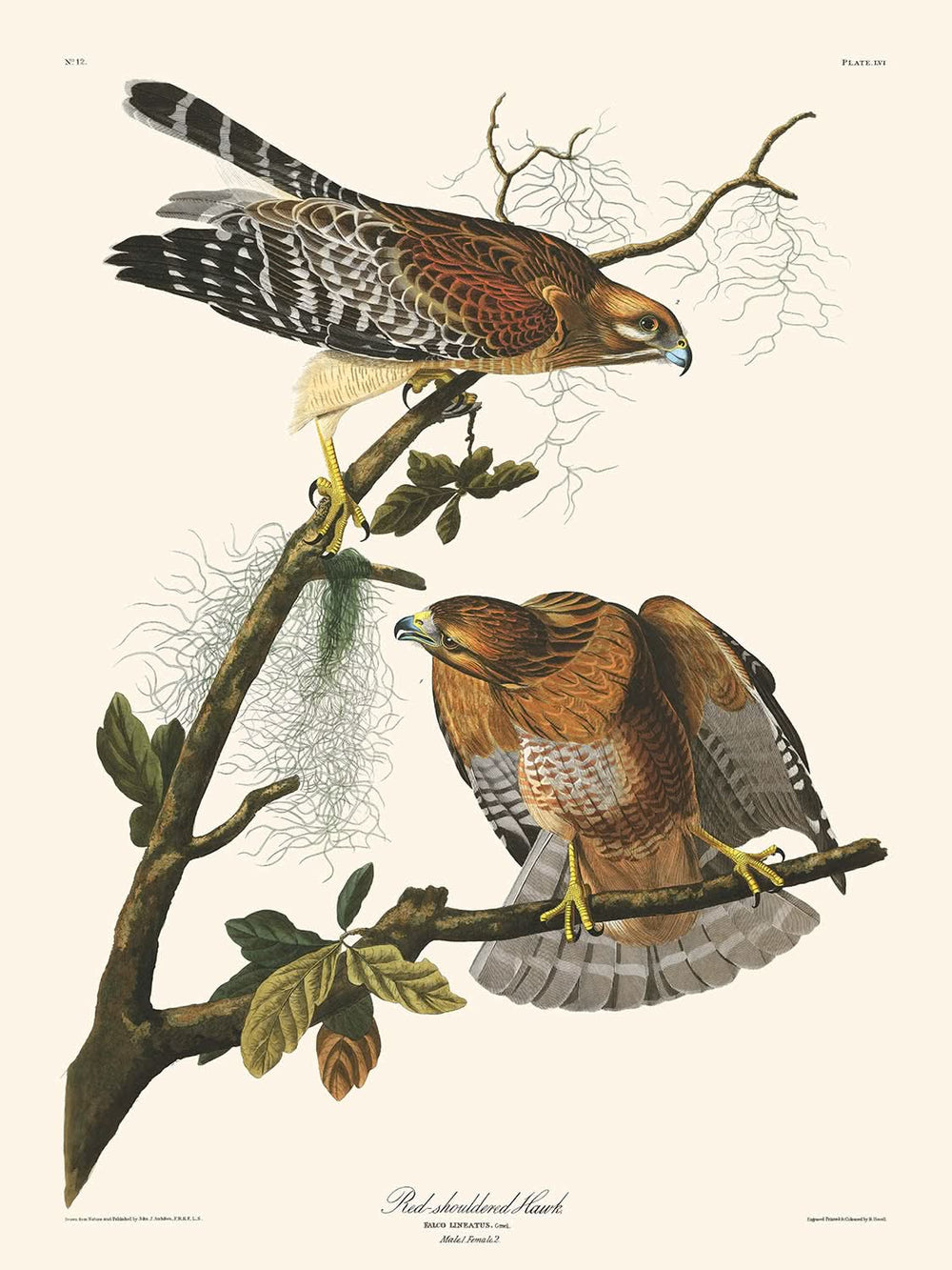 John James Audubon fut un pionnier de l'art animalier américain, célèbre pour son désir de documenter et d'illustrer tous les types d'espèces d'oiseaux d'Amérique du Nord. Son œuvre Birds of America, qui comprend 435 gravures grandeur nature, est devenue une référence cruciale en ornithologie et en histoire de l'art en raison de son ampleur et de sa précision. L'illustration de la Buse à épaulettes représente à la fois son talent artistique et son dévouement à l'histoire naturelle.