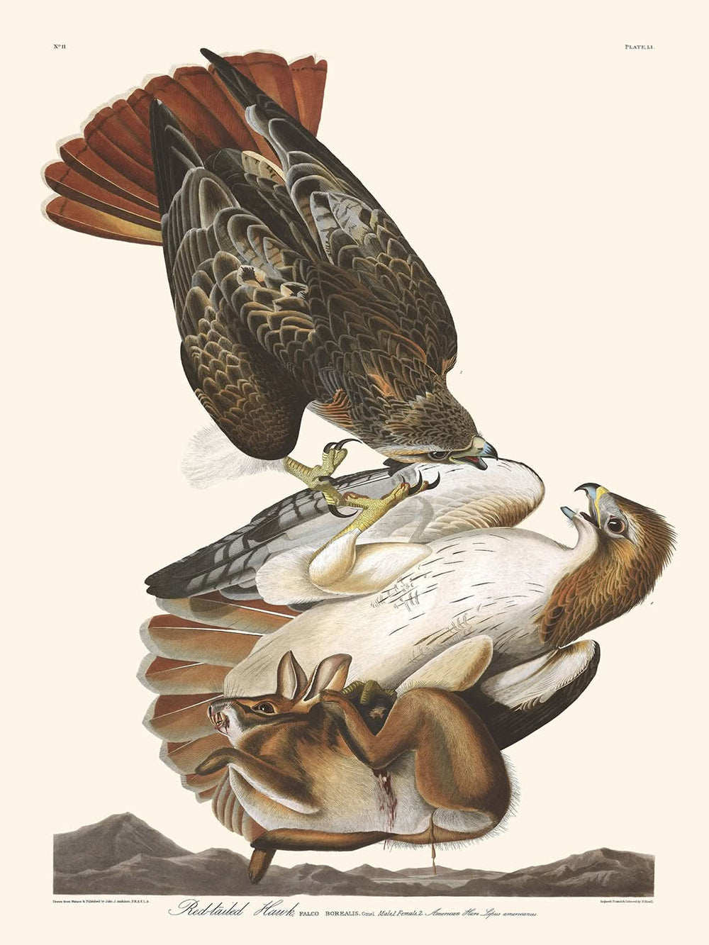Buse à queue rousse par John James Audubon 1827