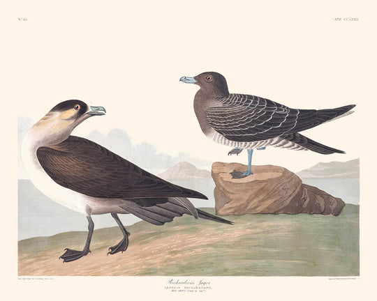 L'ornithologue et artiste renommé John James Audubon a rendu hommage au majestueux "Richardson's Jager" dans le cadre de son œuvre révolutionnaire, "Birds of America," publiée en 1827. Cette illustration frappante immortalise la présence rare du Jaeger de Richardson sur les côtes nord-américaines, particulièrement mise en valeur contre le décor hivernal clair du Massachusetts et du Maine.