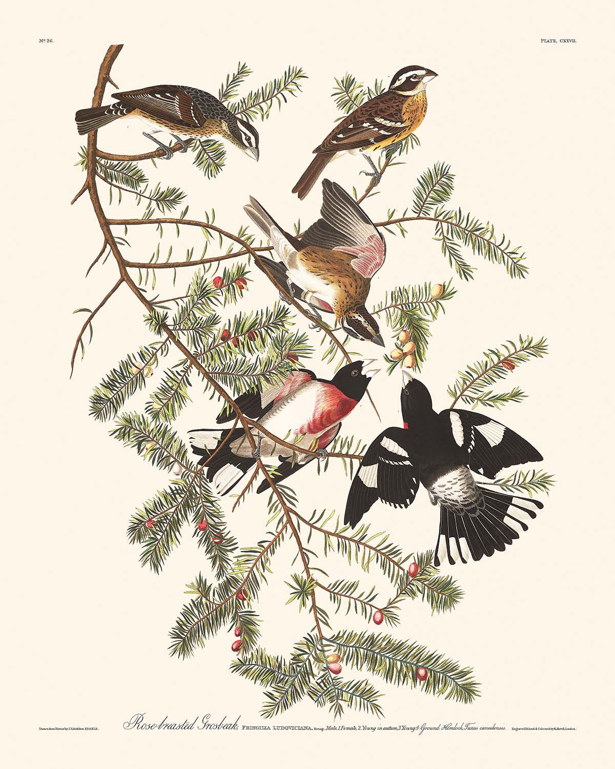 Gros-bec à poitrine rose par John James Audubon, 1827