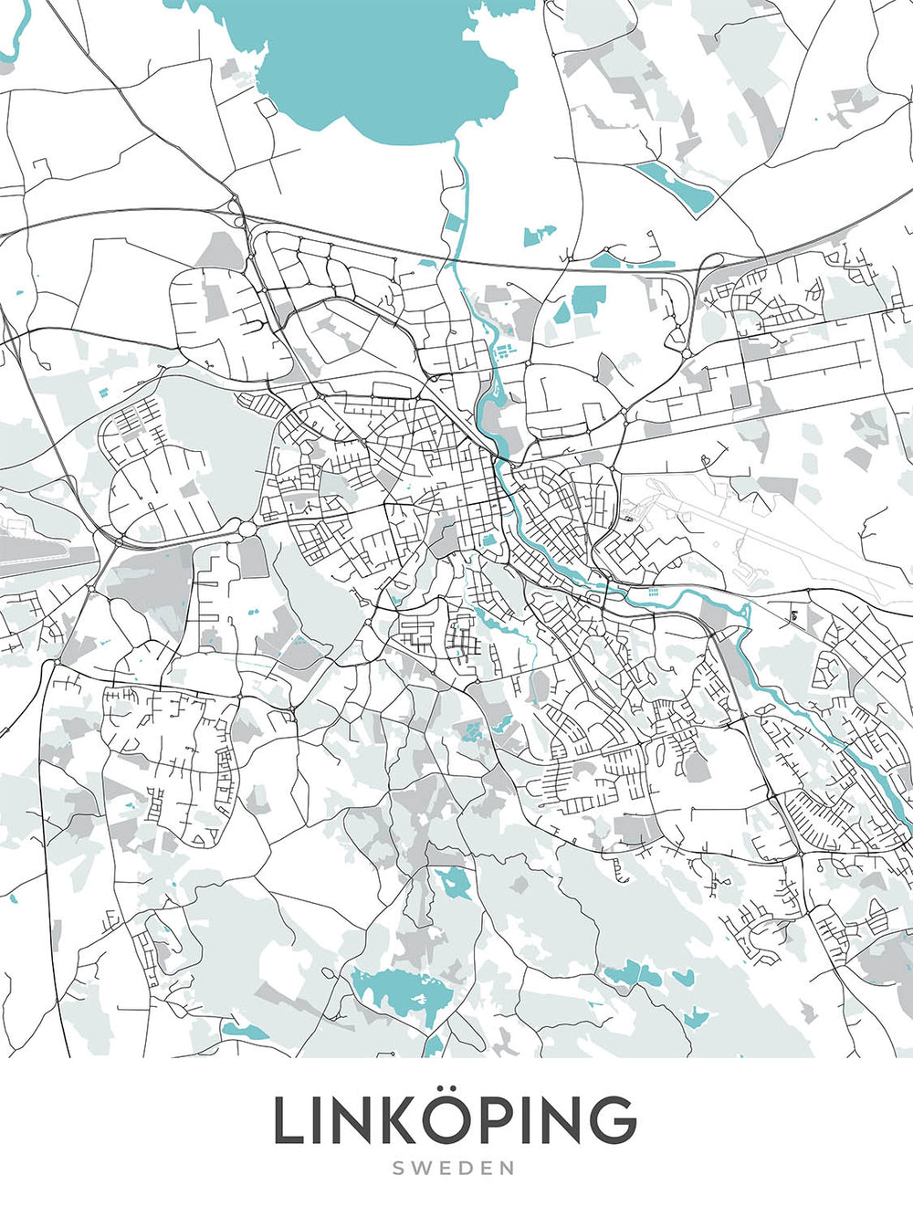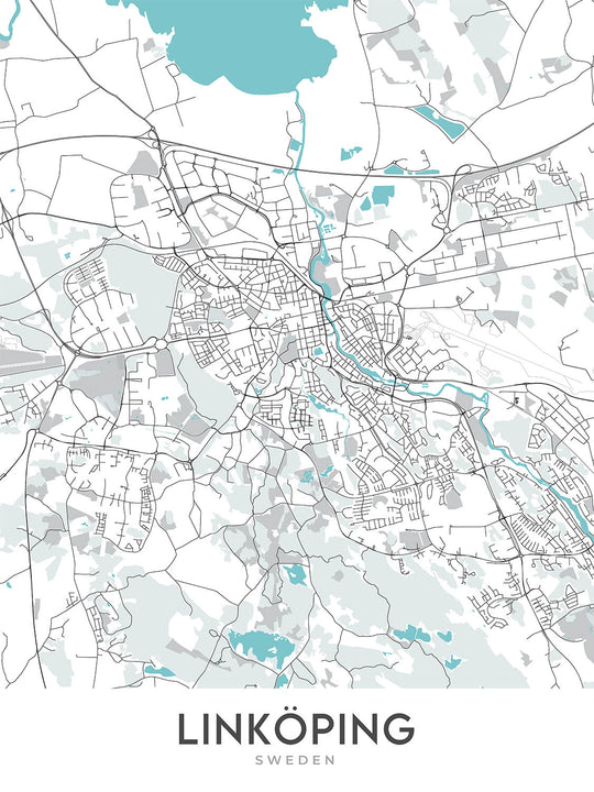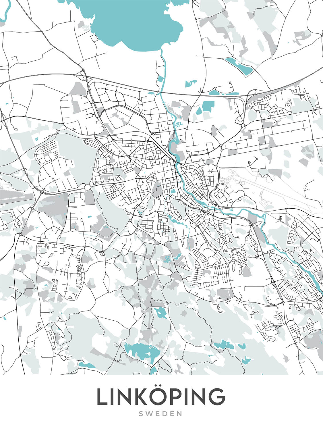 Cette carte de Linköping, en Suède, est un plan de rue moderne et détaillé sans étiquettes. Il se concentre sur la ville de Linköping et ses environs, offrant une représentation précise et visuellement attrayante de la configuration de la ville. La carte couvre un large éventail de quartiers, notamment Valla, Ekholmen, Tornby, Berga, Stångebro, Johannelund, Tannefors, Vimanshäll, Hageby et Skäggetorp.