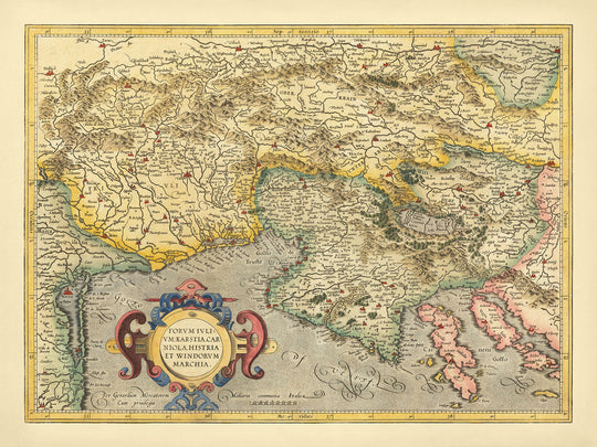 Ancienne carte de la Slovénie, de la Croatie et de l'Italie par Mercator, 1619: Ljubljana, Trieste, Istrie, Karst, Golfe de Venise