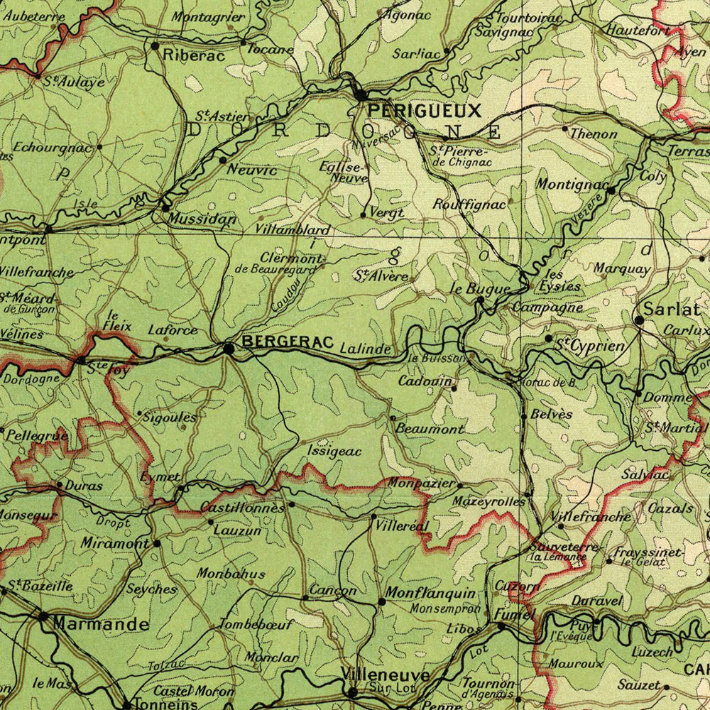 - Insets: Smaller map inset of Bordeaux showing urban planning and significant infrastructure.
