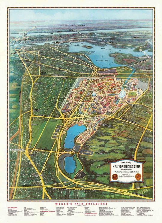 Exposition universelle de New York, 1939 par Spofford: Ancienne carte illustrée de Manhattan, New Jersey, métro, chemin de fer, Flushing Meadows
