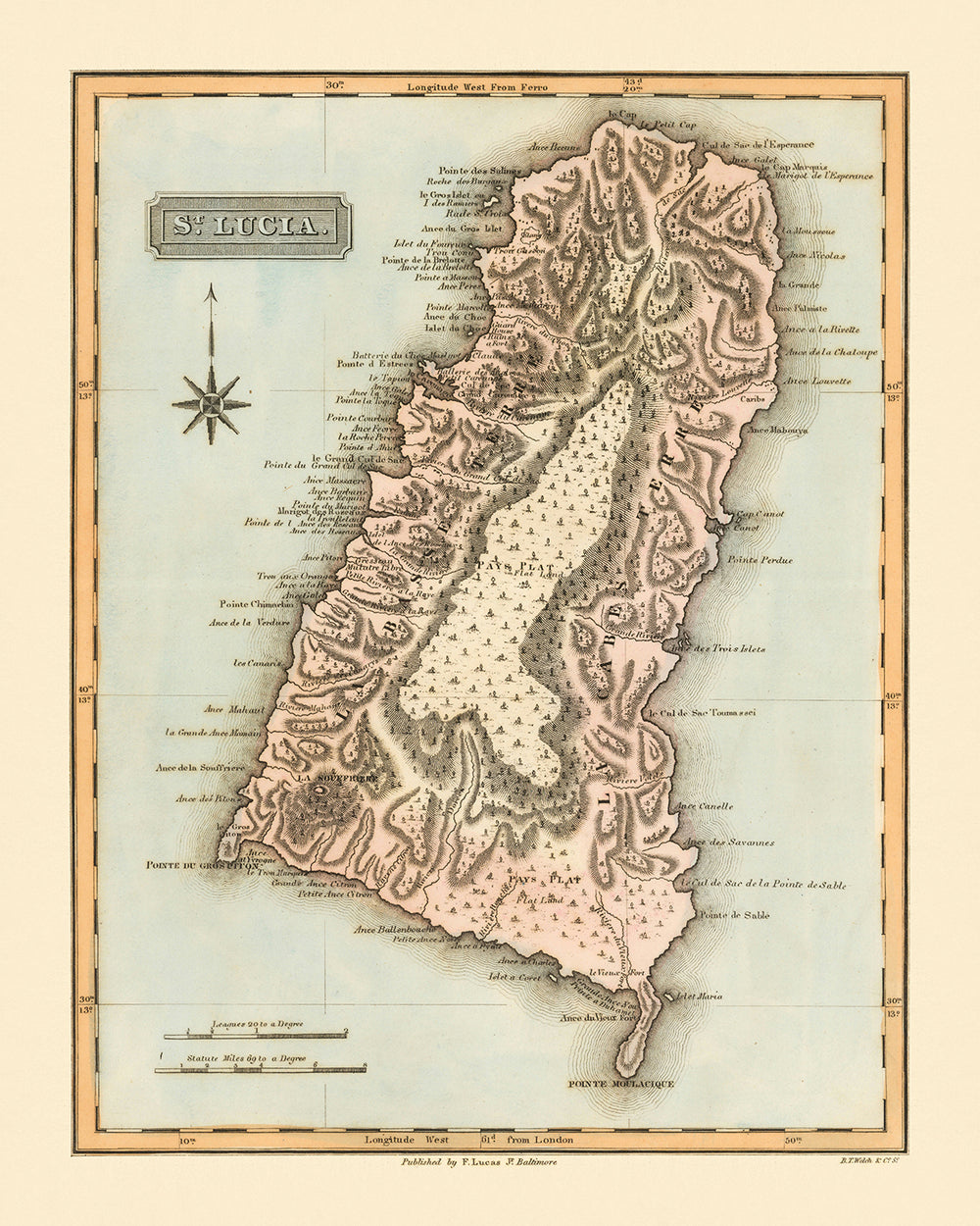 - La carte de Lucas est la première carte commerciale détaillée de Sainte-Lucie publiée en Amérique.