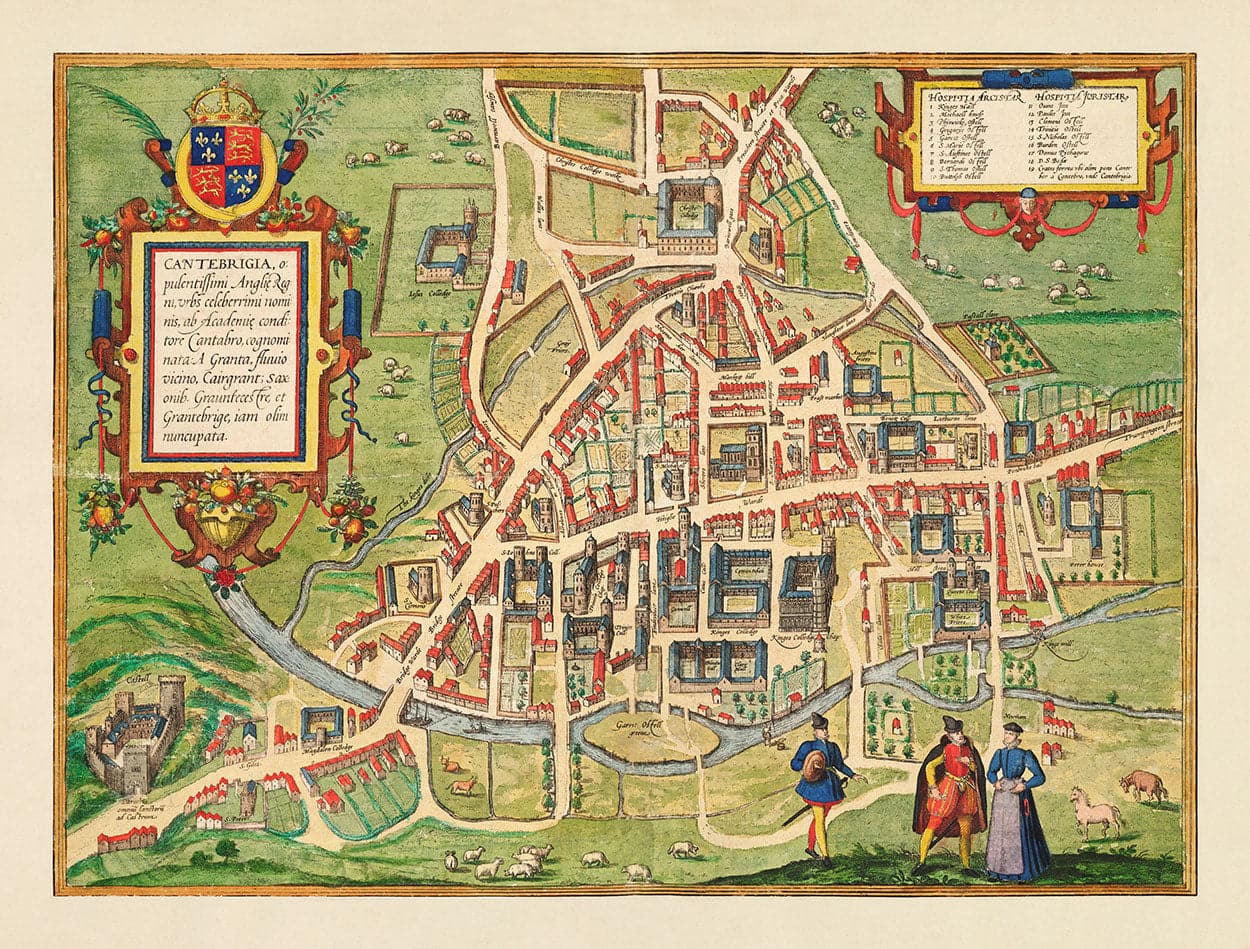 Vous pouvez voir que de nombreux anciens collèges de Cambridge figurent déjà sur cette carte, y compris Trinity, Kings, Queens, Pembroke, Clare, Peterhouse, Gonville & Caius, St John's, Magdalene et Christ's.