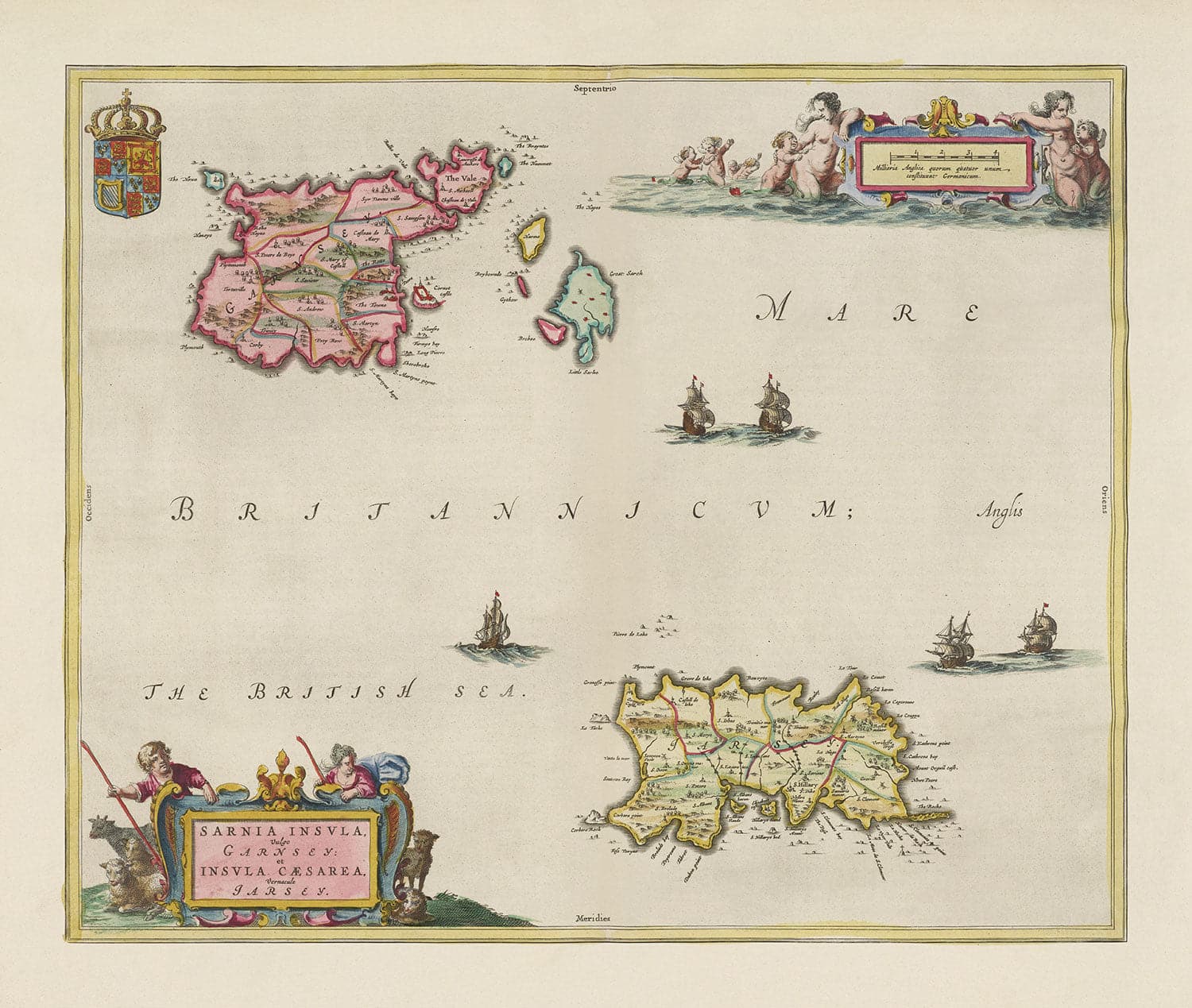 Beaucoup des villes et territoires de ces îles anglo-normandes sont déjà visibles sur cette carte.