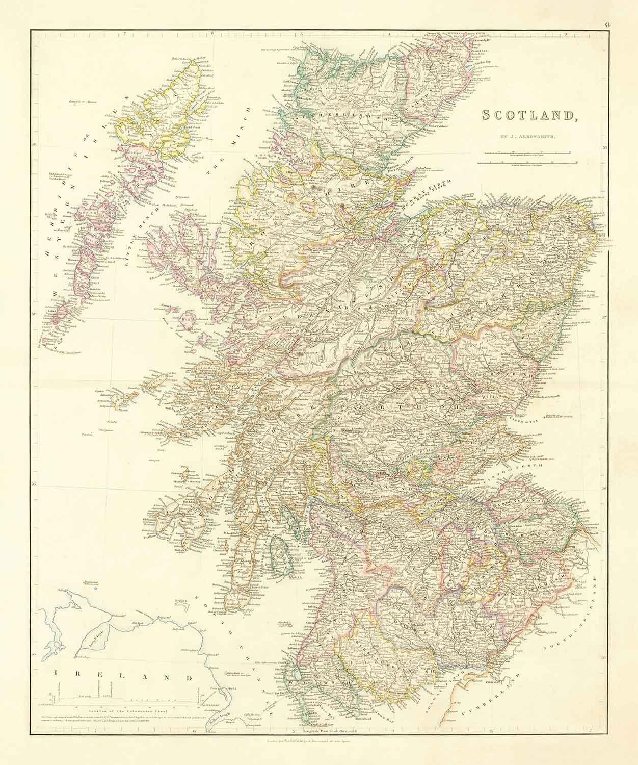 Une magnifique carte de l'Écosse, publiée par probablement le cartographe le plus recherché du milieu du XIXe siècle, John Arrowsmith.