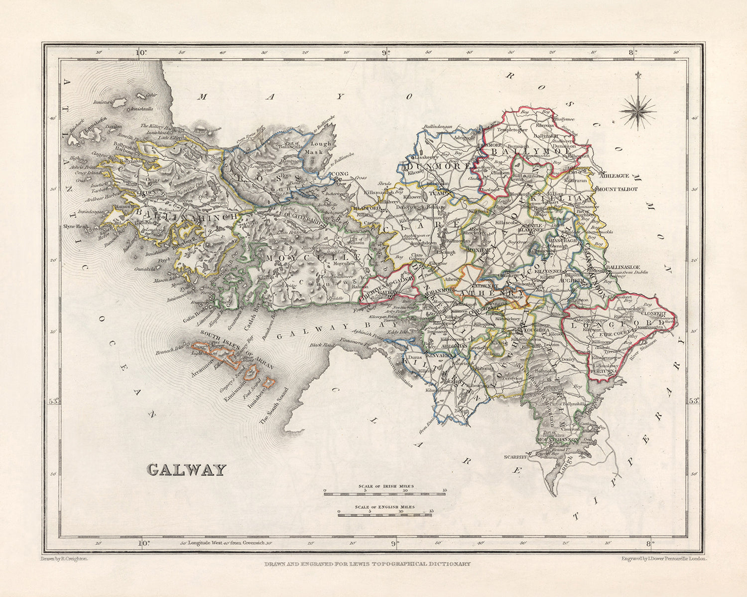 Ancienne carte du comté de Galway par Samuel Lewis, 1844 : Athenry, Ballinasloe, Clifden, Gort, Loughrea
