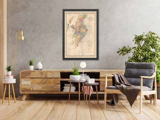 Cette jolie carte de l'Écosse, créée par WH Lizars et publiée par A. Constable en 1822, est une carte en couleur rare du début des années 1800 détaillant tous les clans écossais des Highlands.