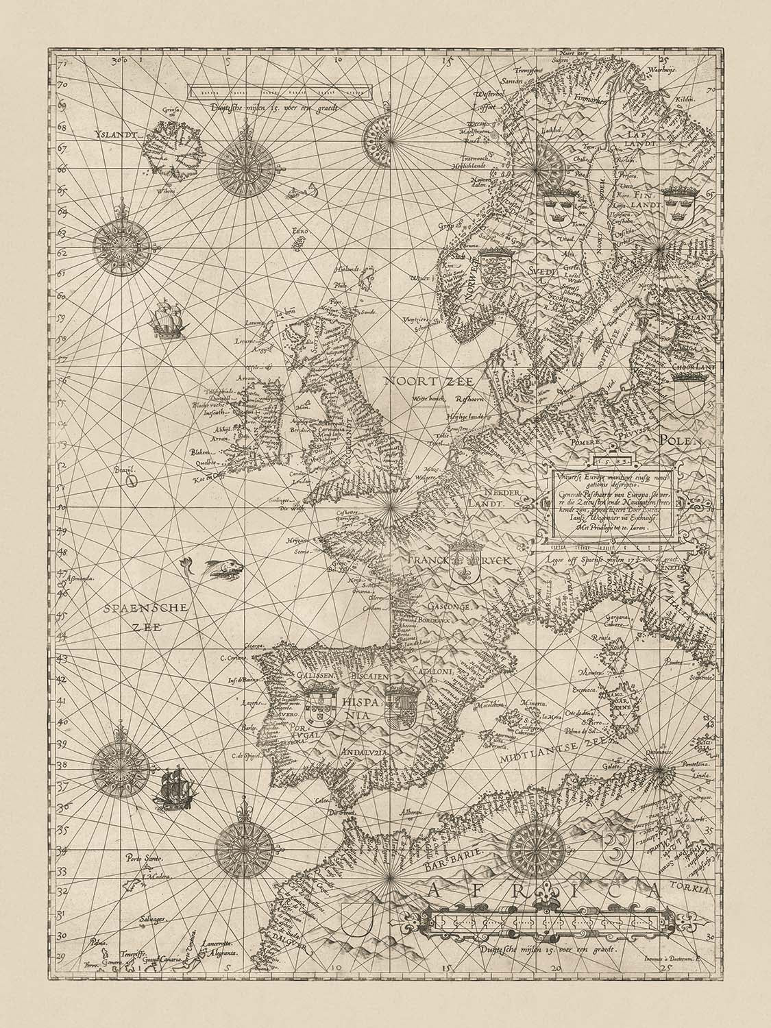 Monochrome First Nautical Chart of Europe by Waghenaer, 1583
