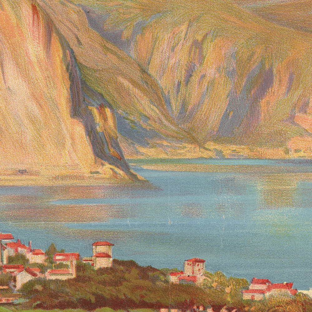 This Beaulieu-sur-Mer composition celebrates the coastal resort’s sheltered bays and luxuriant gardens—features that made it a favorite wintering spot for European travelers and a glamorous summer destination for sun-seekers. In 1920, as railways broadened access to France’s southern shores, posters like this played a pivotal role in shaping the Riviera’s international allure. The image evokes the ease of stepping from a P.L.M. carriage into radiant light, azure water, and an amphitheater of hills that feels both intimate and grand.