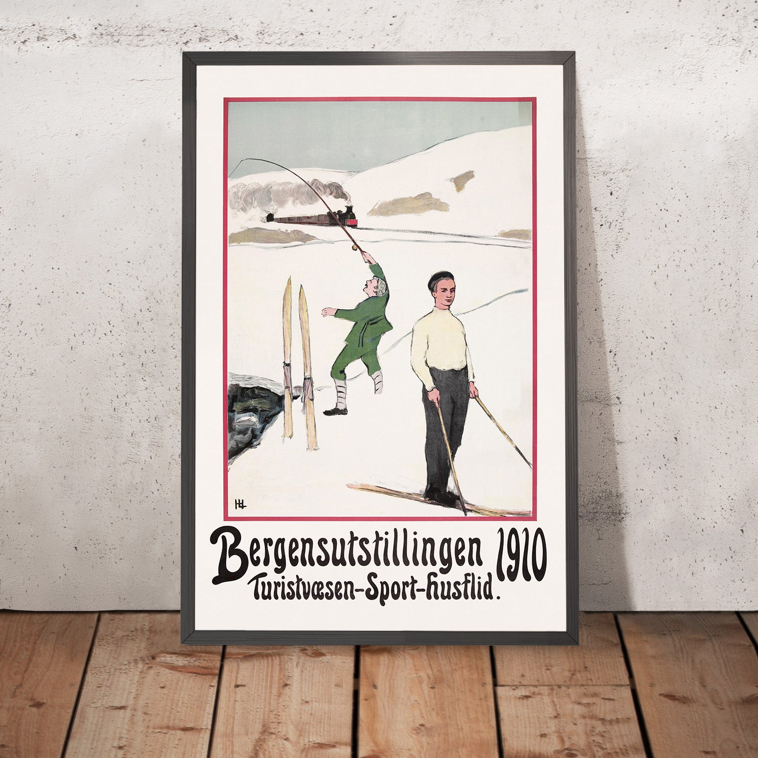 While the artist’s name has been lost to history, posters like this were typically commissioned by local exhibition committees and tourist offices to champion regional pride and modern industry. In 1910, Bergen was already celebrated for its steep mountains, wooden quays, and bracing coastal climate—an ideal staging ground for the era’s growing passion for outdoor pursuits. This print captures that moment, when Nordic cities used bold, legible design to welcome travelers and showcase their cultural identity.