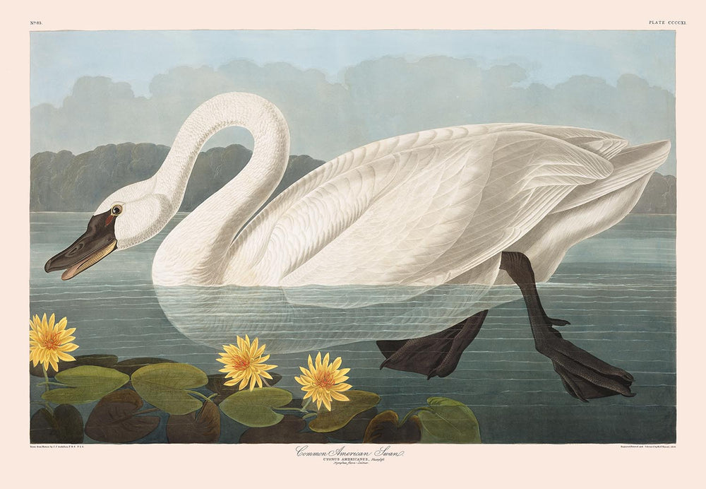 Le cygne américain commun, publié pour la première fois en 1827, est l'une des illustrations les plus reconnaissables et les plus belles de l'œuvre majeure de John James Audubon, Les Oiseaux d'Amérique.