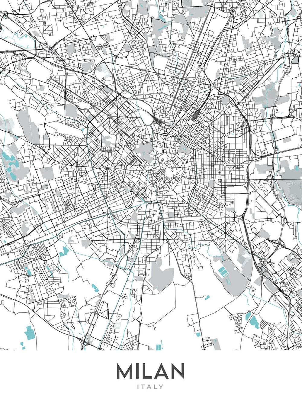 Cette carte de Milan, en Italie, est un plan de ville moderne qui se concentre sur les détails complexes du tracé des rues de la ville. Il s’agit d’un plan détaillé des rues sans étiquettes, permettant au spectateur de se concentrer sur les aspects visuels de la ville. La carte couvre une vaste zone de Milan, y compris plusieurs des quartiers les plus populaires de la ville, tels que Brera, Porta Nuova, Navigli et Isola. Il comprend également de nombreuses routes, routes et autoroutes principales de la ville, telles que Viale Monza, Viale Fulvio Testi et Viale Zara.