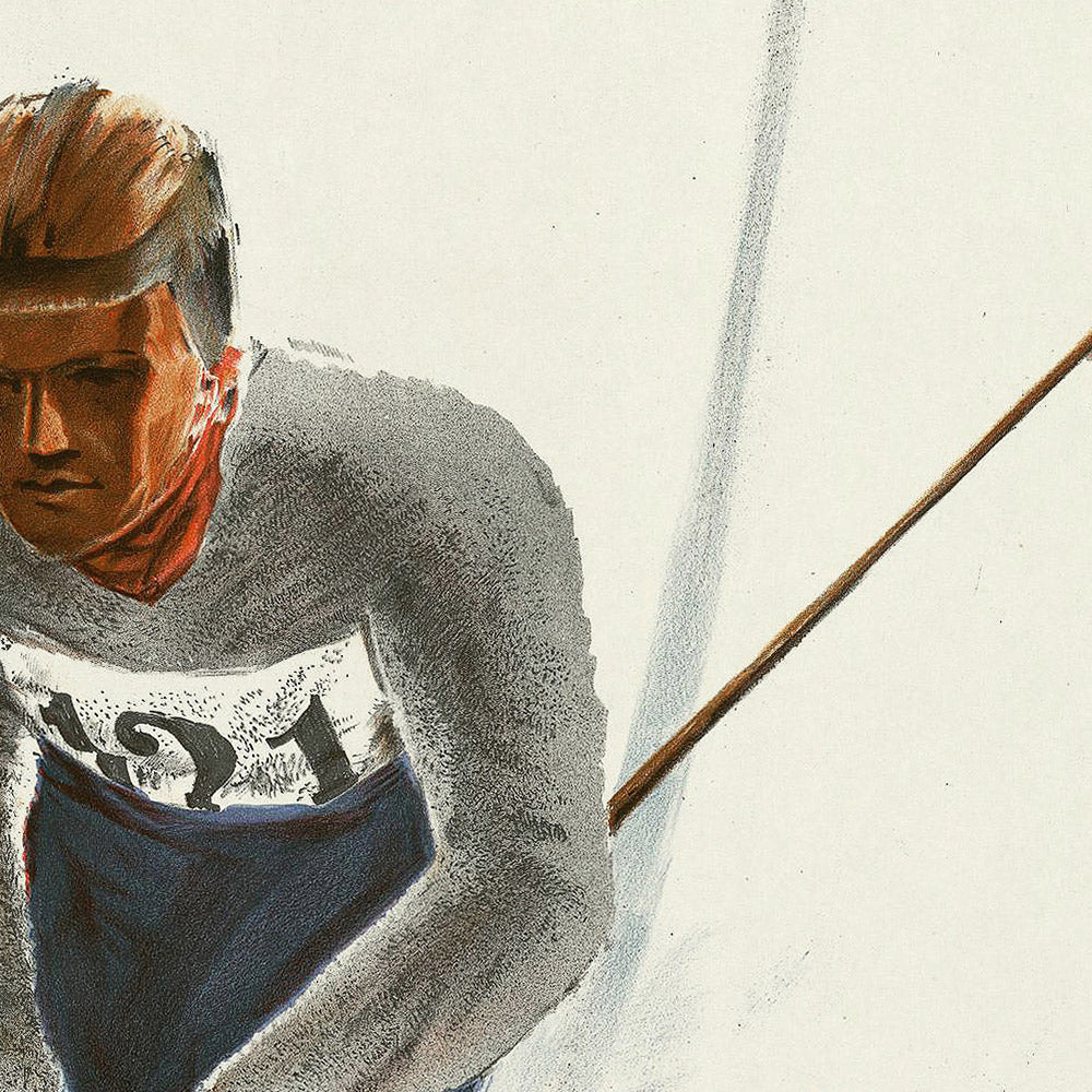 About the artist: Though biographical records for Einar Johnsen are scarce, his name and the period of this design align with a cohort of Norwegian poster artists active in the 1920s–1930s, when commercial art embraced clarity, bold color, and decisive forms. Artists in this circle worked for travel bureaus, sporting associations, and outfitters, crafting images that distilled motion into memorable silhouettes and typography. Johnsen’s work here demonstrates that visual language—simple, legible, and irresistibly kinetic.