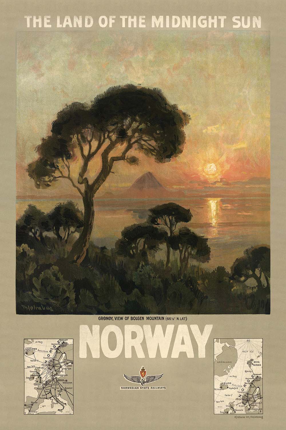 Norway Travel Poster: The Land of the Midnight Sun by Thorolf Holmboe