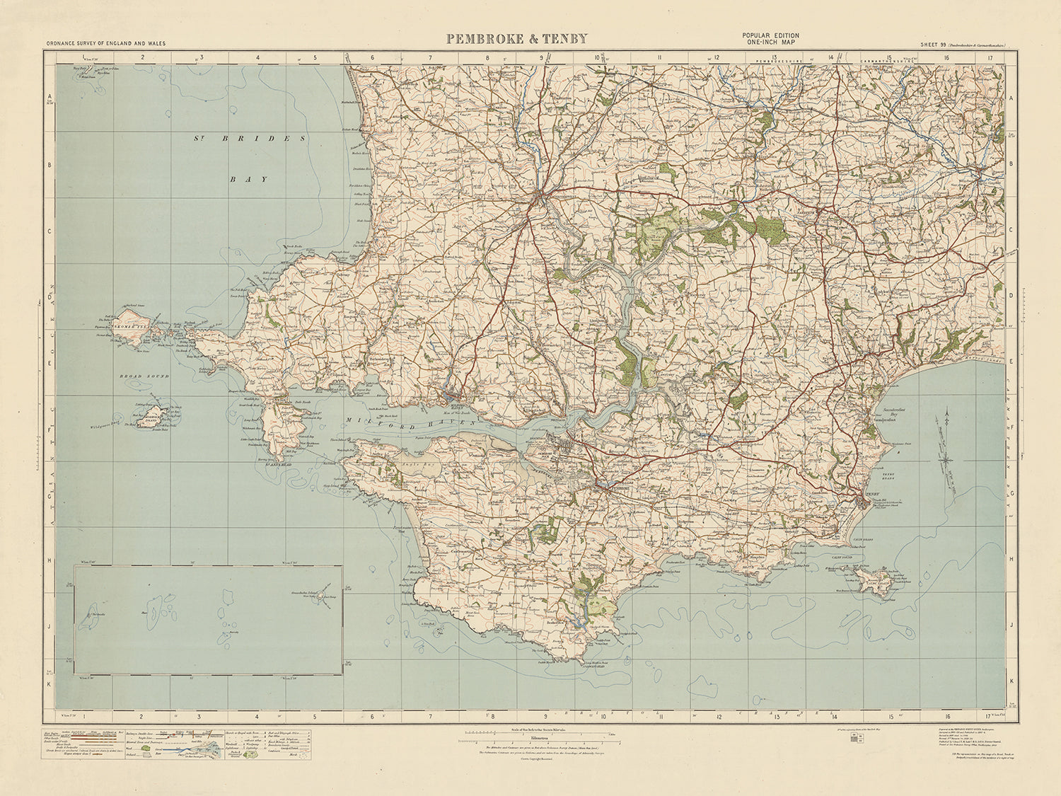 Carte de l'Old Ordnance Survey, feuille 99: Pembroke & Tenby, 1925 : Neyland, Milford Haven, Haverfordwest, Narberth, parc national de la côte du Pembrokshire