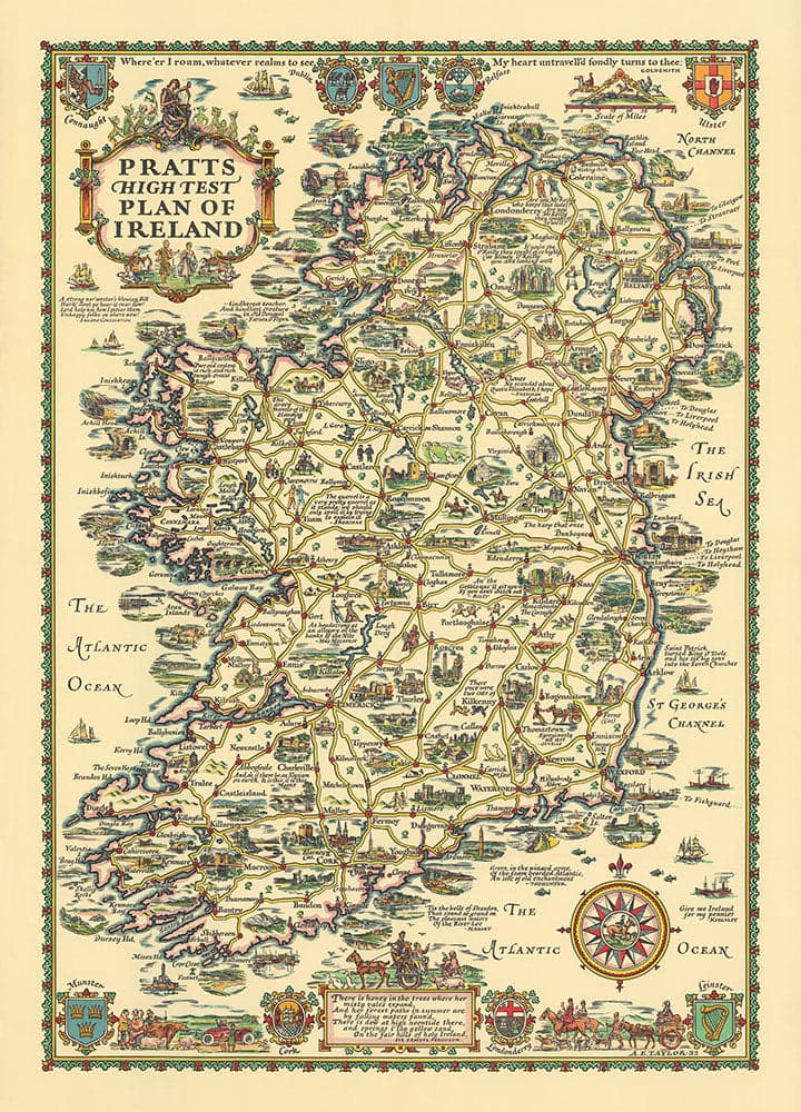 Pratts High Test Plan d'Irlande, Eire, 1933: Dublin, Belfast, Ulster