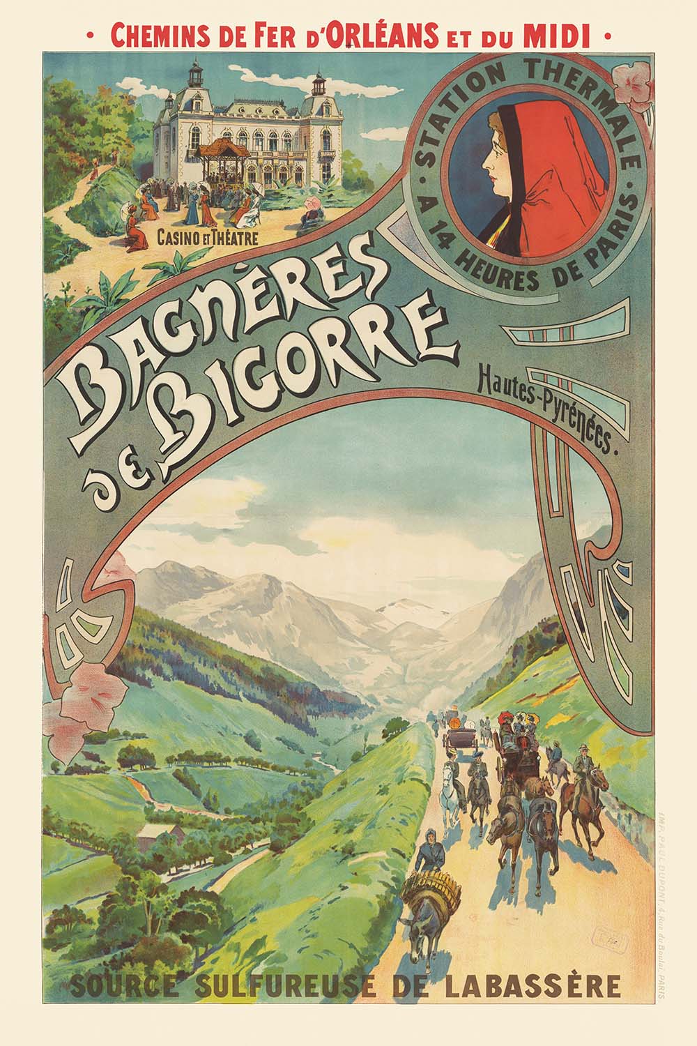 Bagnères-de-Bigorre Travel Poster: Les chemins de fer d’Orléans et du Midi by Paul Dupont, 1902
