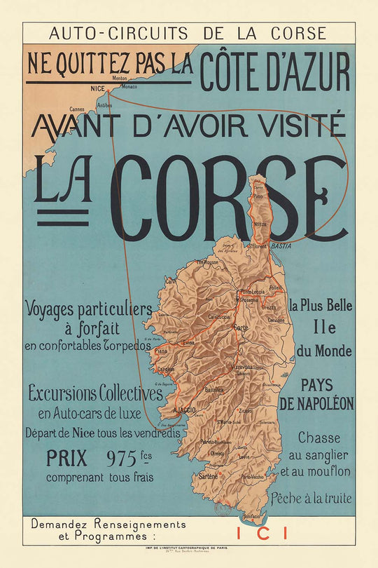 Corsica Travel Poster: Don't Leave The French Riviera Without Visiting... 1922