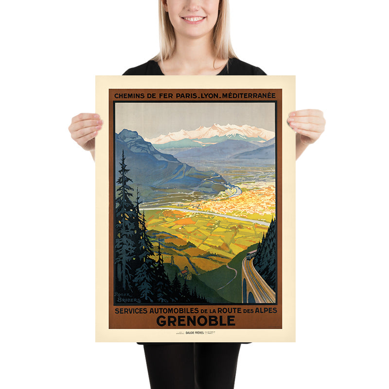 Grenoble Travel Poster: Services automobiles de la route des Alpes by Roger Broders, 1920s