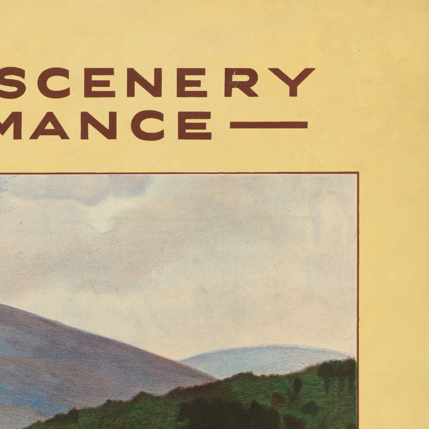 The subject is Ireland itself, portrayed as a place of serenity and romance. This was more than marketing—it was cultural storytelling that aligned with a broader post-Victorian enthusiasm for travel and the outdoors. As rail and steamship links expanded, posters like this welcomed visitors to explore Ireland’s lakes, rivers, and mountains, casting the countryside as timeless and restorative. For anyone with roots in Ireland, memories of a visit, or plans to go, the image evokes the hush of a riverside walk and the glow of late afternoon light on heathered slopes.